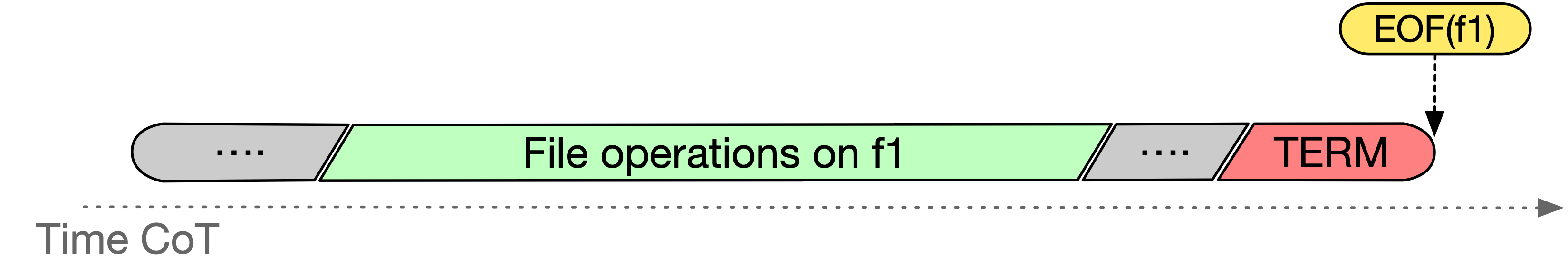 - Commit on Termination (CoT): Upon termination of a workflow step, all produced data files are committed to the file system, becoming ready for consumption by all subsequent steps. The following Gant diagram visually explains the CoT semantics: